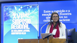 “Entre a cognição e a emoção: uma fronteira que interfere no cuidado do paciente com ELA” foi apresentado pela psicóloga Glauciane Santana, especialista em Neuropsicologia e avaliação psicológica, coordenadora adjunta do Ambulatório de Doenças do Neurônio Motor/ELA (RN). Conforme Glauciane, toda a família do paciente com ELA é impactada, precisa aprender a viver no equilíbrio e a “trocar de papéis”.
