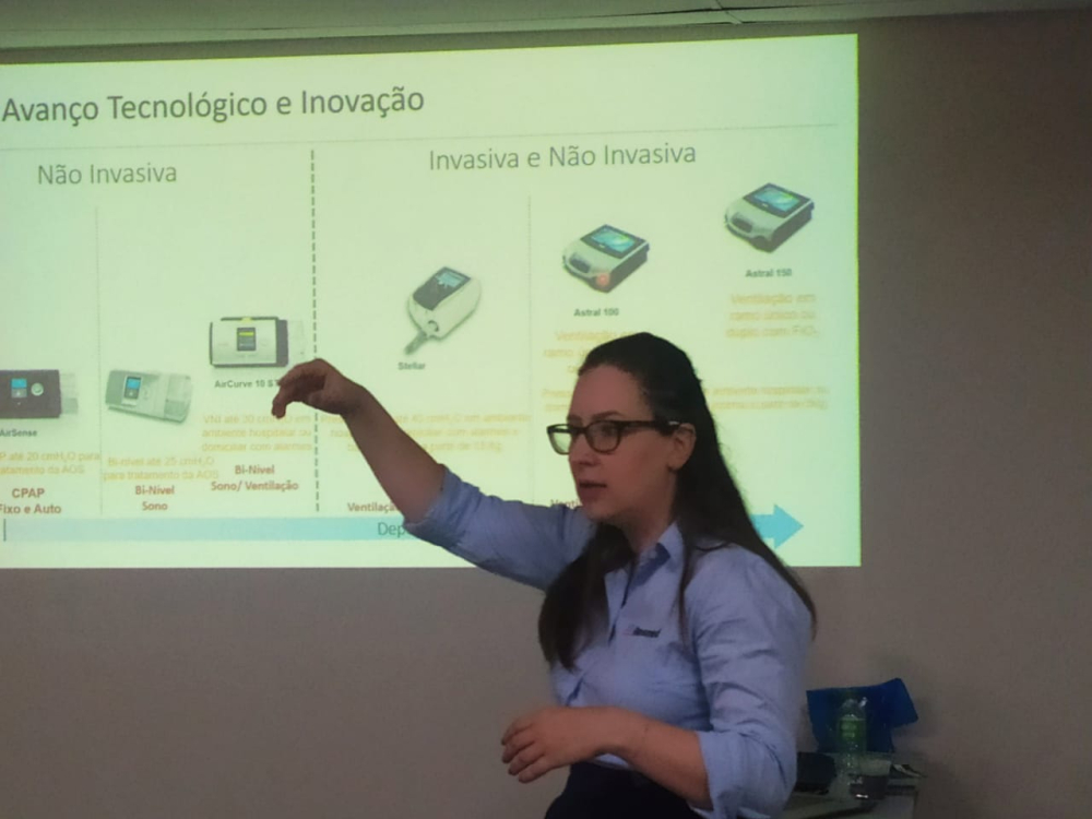 A fisioterapeuta Leila Ortiz, especialista em doenças neuromusculares e mestre em Ciências da Saúde, e a fisioterapeuta do sono, mestre em Ciências Pneumológicas e gerente comercial da Resmed, Daiana Moreira Mortari, abordaram estratégias motoras e respiratórias (teórica e prática), fundamentais para a qualidade de vida dos pacientes. A atividade, desenvolvida durante todo o dia, teve apoio da Resmed.