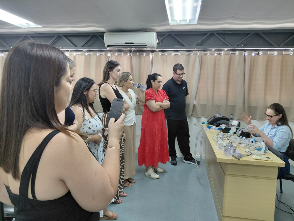 Em uma aula prática, as fisioterapeutas também demonstraram aos participantes o uso de equipamentos de ventilação, assistente de tosse e reanimador manual.