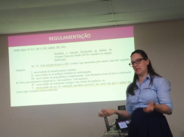 Daiana expôs a regulamentação sobre assistência domiciliar, garantida por lei a todos os pacientes que comprovem essa necessidade. Disse que, com isso, aumentou a demanda por atendimento especializado fora do ambiente hospitalar. A profissional alertou, no entanto, que é fundamental conhecer, detalhadamente, a forma com que cada paciente é afetado pela doença neuromuscular para utilizar os procedimentos e os aparelhos mais adequados.
